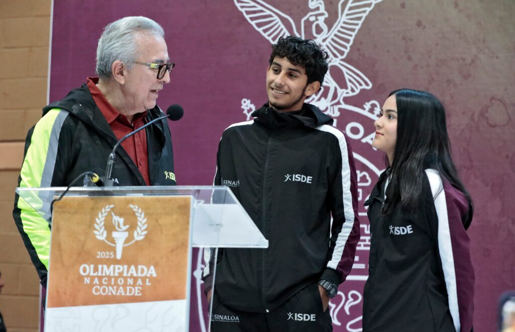 CULIACÁN.- El Gobernador Rubén Rocha Moya, acompañado del Director del Instituto Sinaloense del Deporte Julio César Cascajares Ramírez, abanderó a la delegación sinaloense que, conformada por 600 deportistas, representará a Sinaloa en las Olimpiadas Nacionales CONADE 2025, que tendrá como sedes los estados de Jalisco, Colima, Puebla, Tlaxcala y Yucatán, del 15 de mayo al 25 de julio.