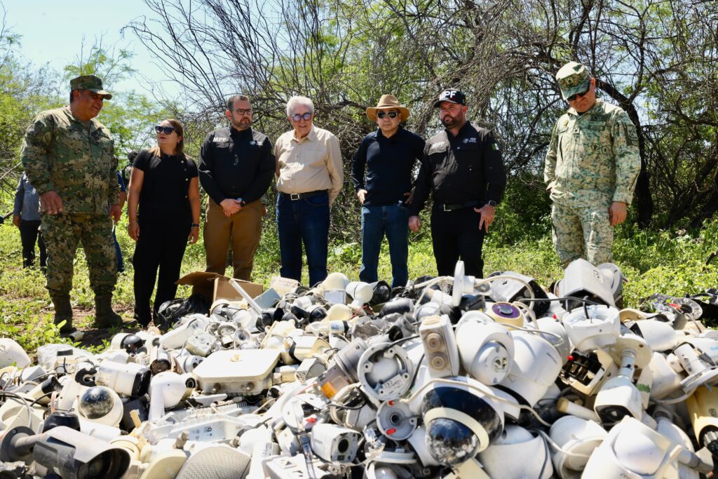 El mandatario estatal asistió por tercera ocasión a un predio ubicado en el ejido Los Becos, al sur de Culiacán, lugar donde la Fiscalía General de la República realiza de manera periódica la incineración de drogas, y en esta ocasión también participó la Fiscalía General del Estado, pues por primera vez se procedió a la destrucción de mil 652 cámaras de videovigilancia clandestinas, que han sido retiradas de la vía pública.