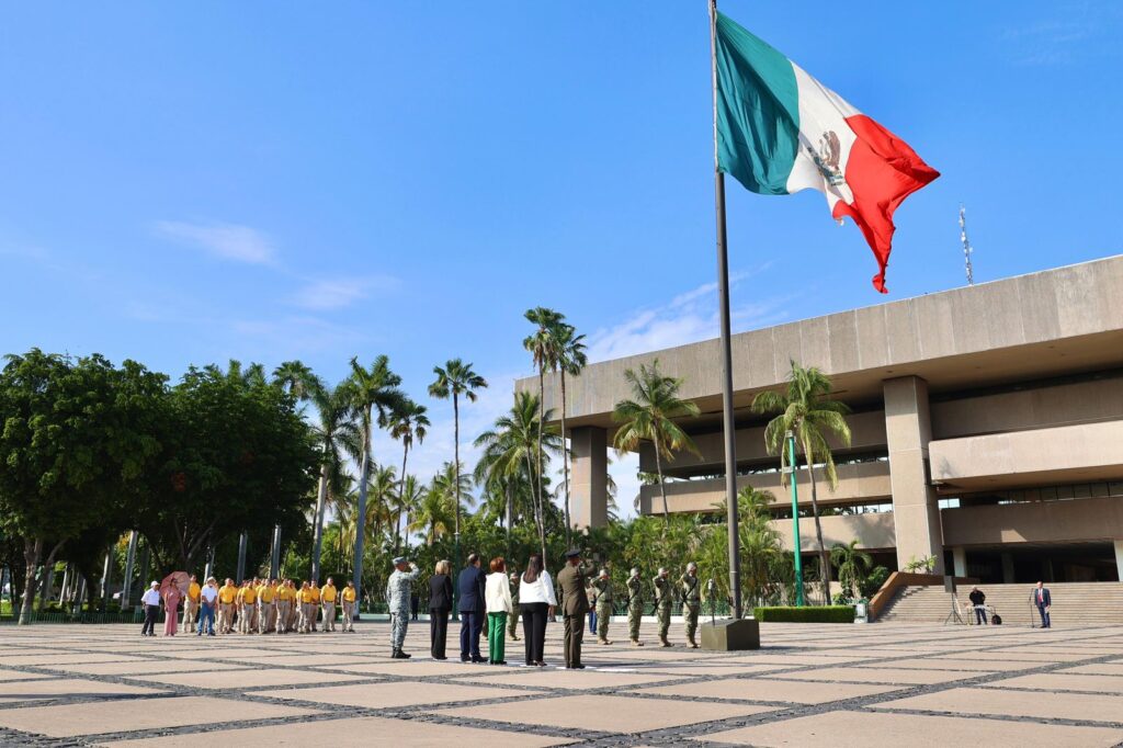 La Secretaria María Inés Pérez Corral presidió el izamiento oficial en representación del Gobernador Dr. Rubén Rocha Moya