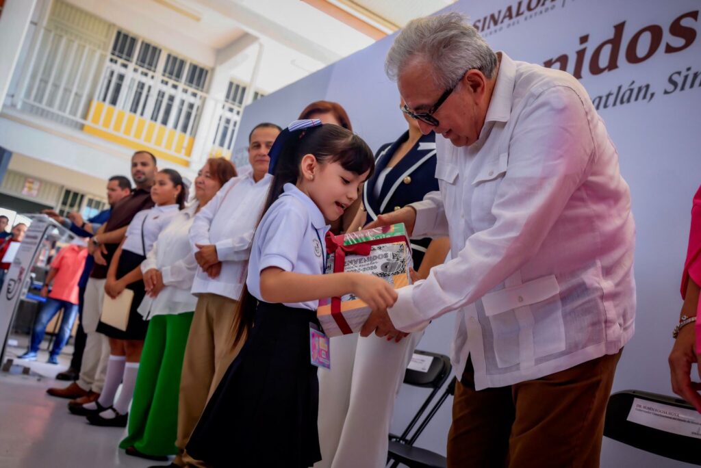 VILLA UNIÓN, Mazatlán.- Con un llamado a educar para la paz y para forjar ciudadanos de bien, el gobernador Rubén Rocha Moya puso en marcha el ciclo escolar 2025-2026 para las más de 6 mil 400 escuelas de educación básica, a las cuales asisten 562 mil niñas y niñas de preescolar, primaria y secundaria en todo el estado.