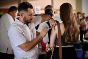 CULIACÁN.- De nueva cuenta, se registró una importante afluencia de la población en el módulo de vacunación contra el sarampión instalado por la Secretaría de Salud en Palacio de Gobierno.